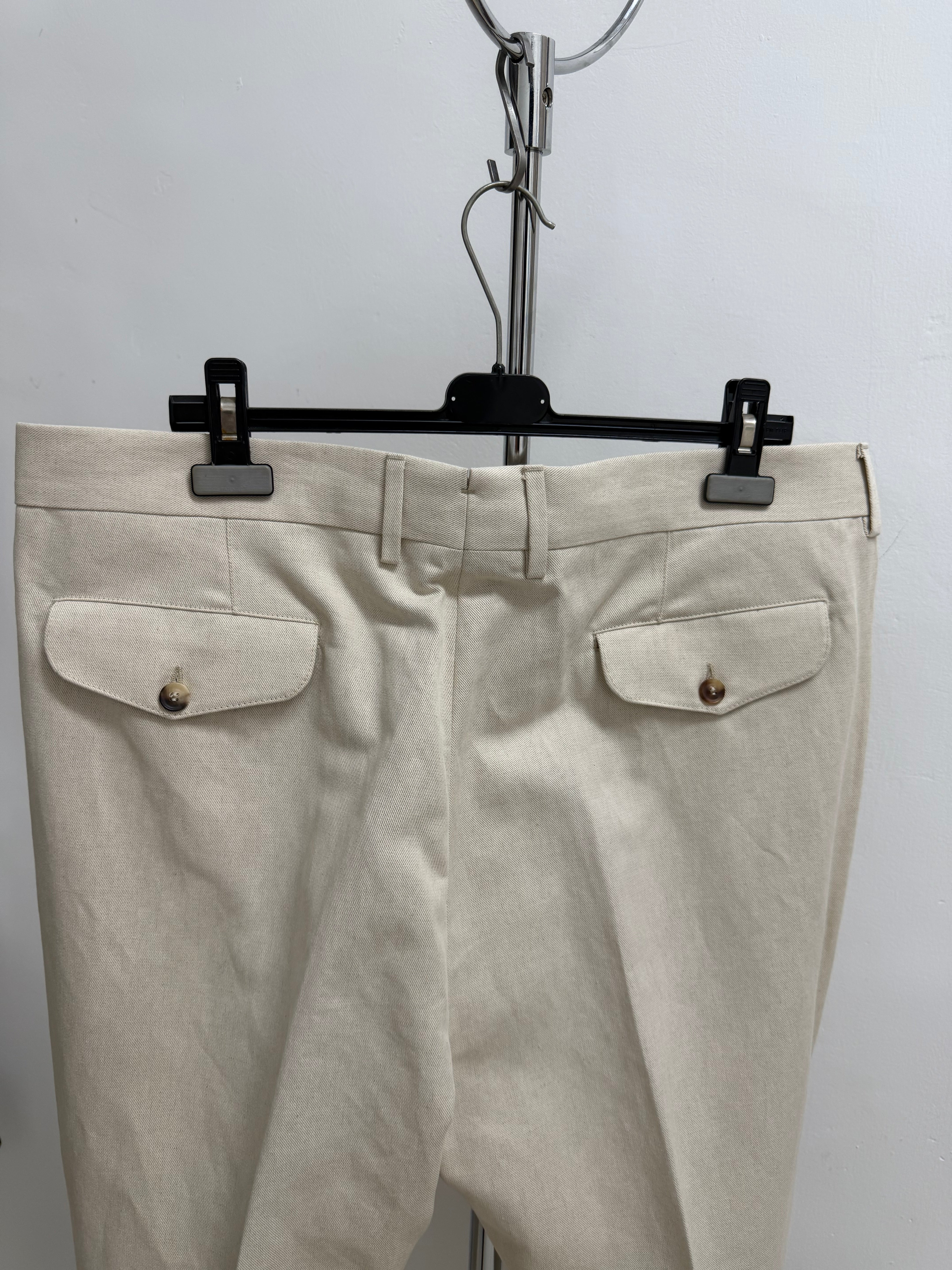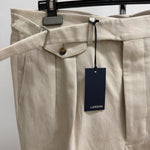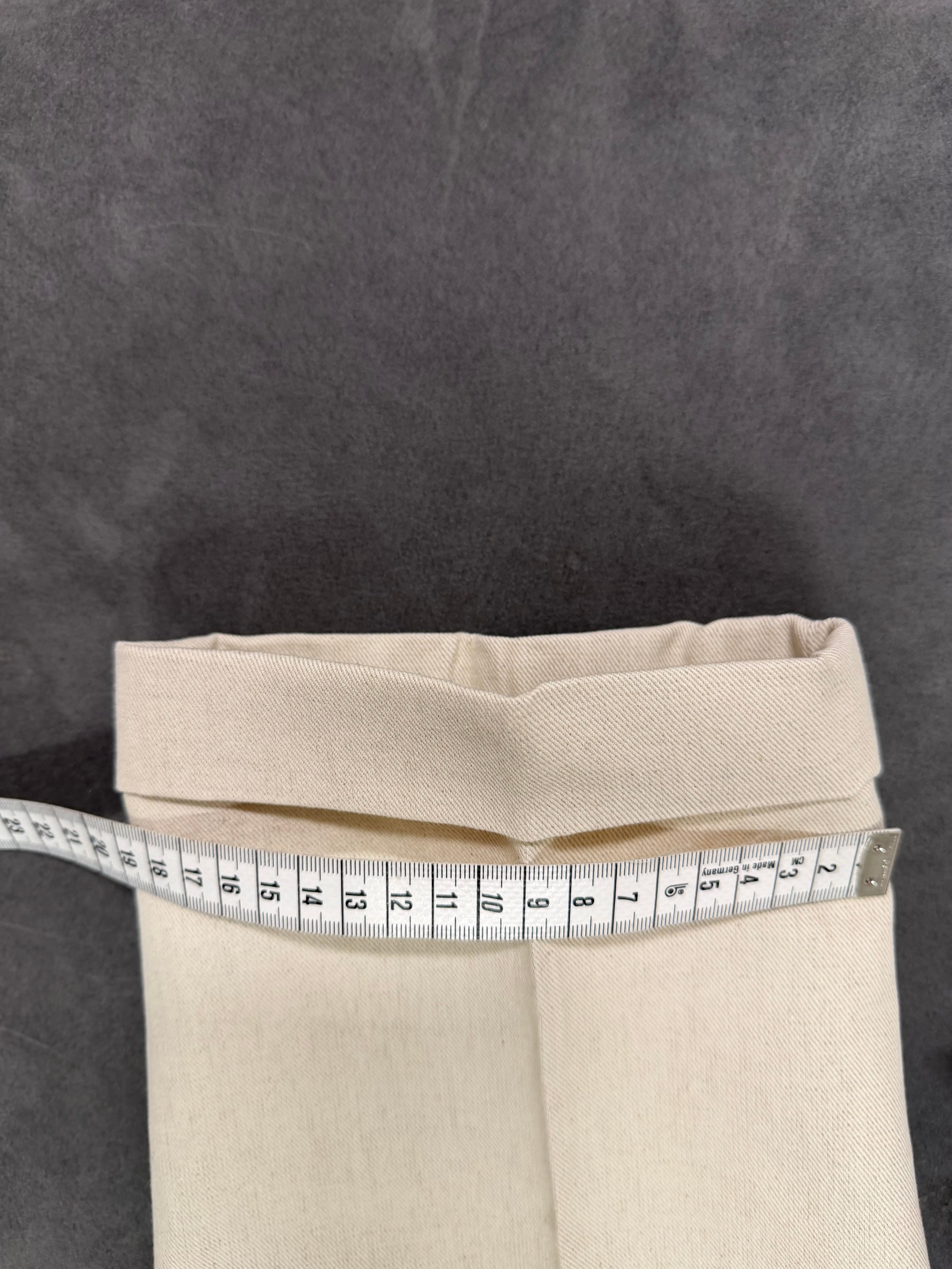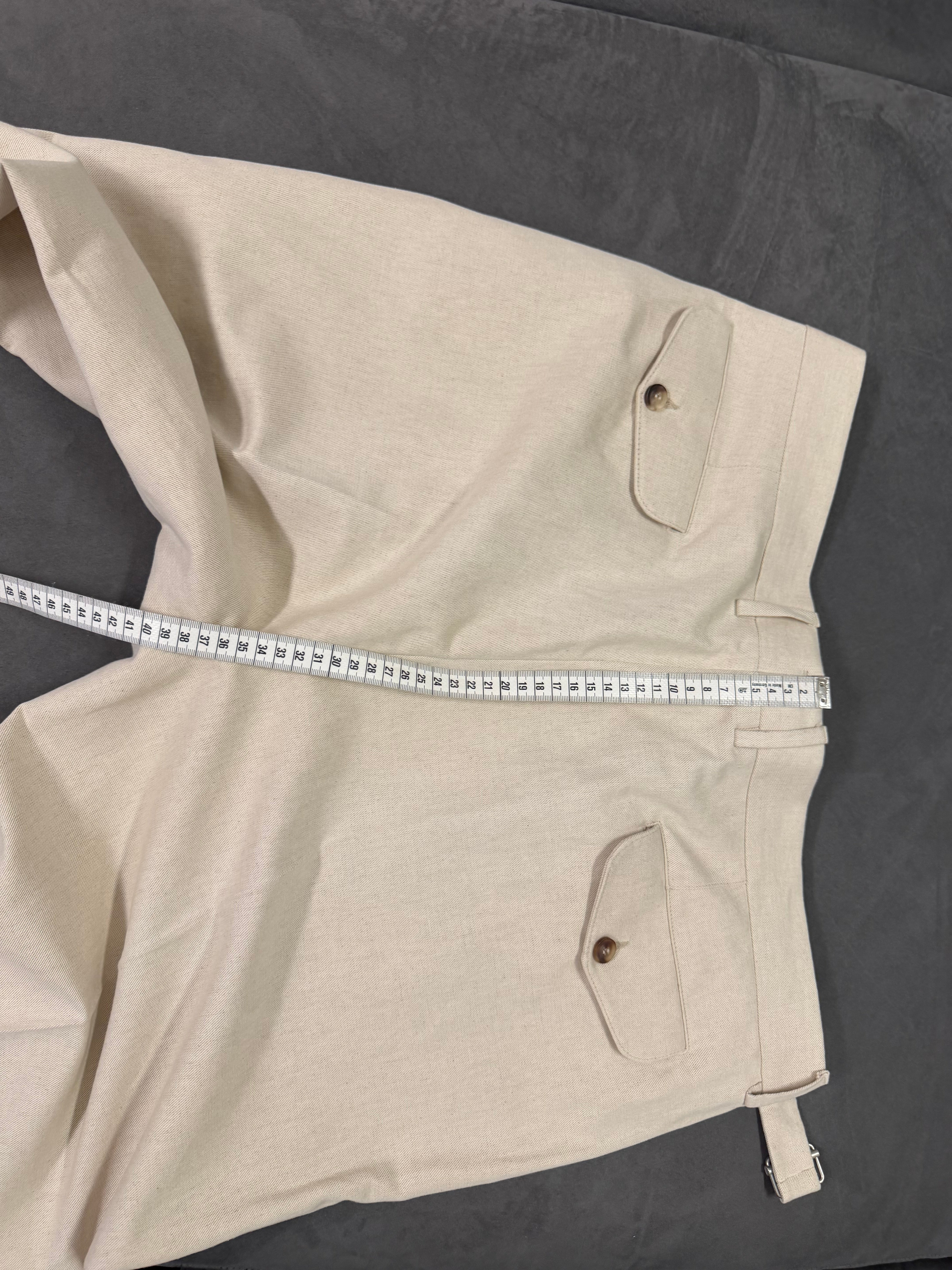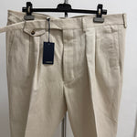 • Dettaglio Cinturino: Caratterizzati da un prolungamento della cintura in vita con chiusura a scomparsa, un tocco distintivo della sartoria di alto livello.