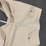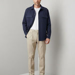 Il colore beige neutro e la texture del cotone rendono questo capo estremamente versatile. Si abbina perfettamente alla giacca camicia blu notte per un contrasto sofisticato, oppure alla t-shirt serafino color cammello per un look ton-sur-ton di grande tendenza.