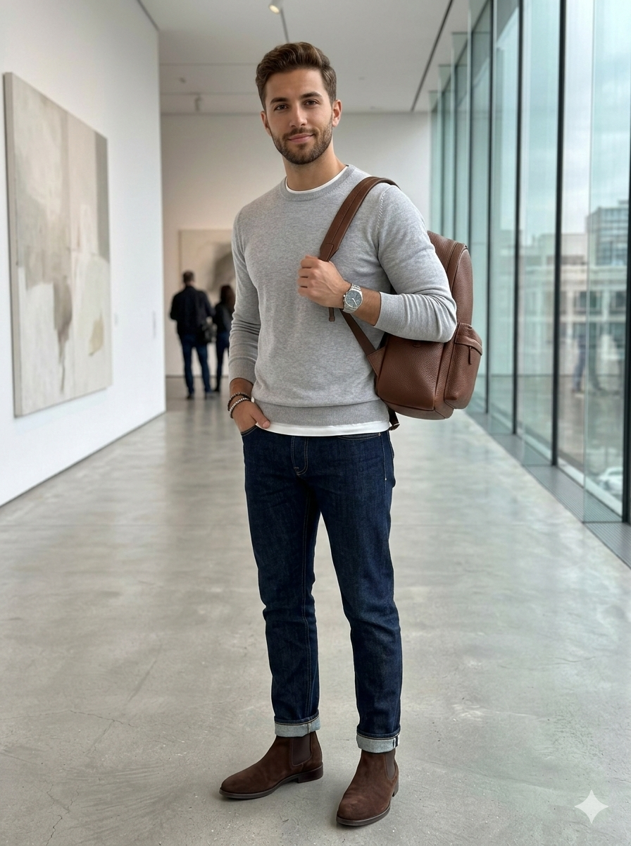Pullover Girocollo Kangra – 100% Cotone (Grigio Perla)