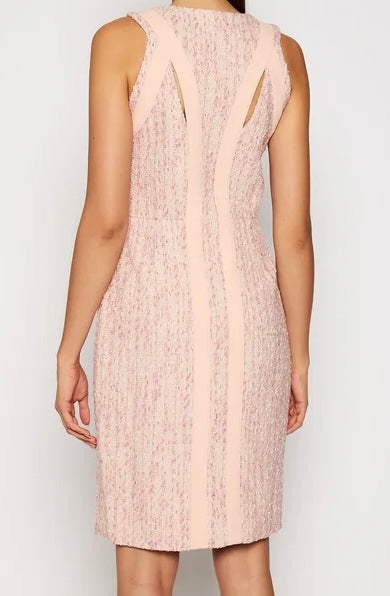 Colore rosa , in tweed, crêpe, lamè, senza applicazioni, fantasia multicolore, collo tondo, senza maniche, interno foderato, zip, senza tasche.
