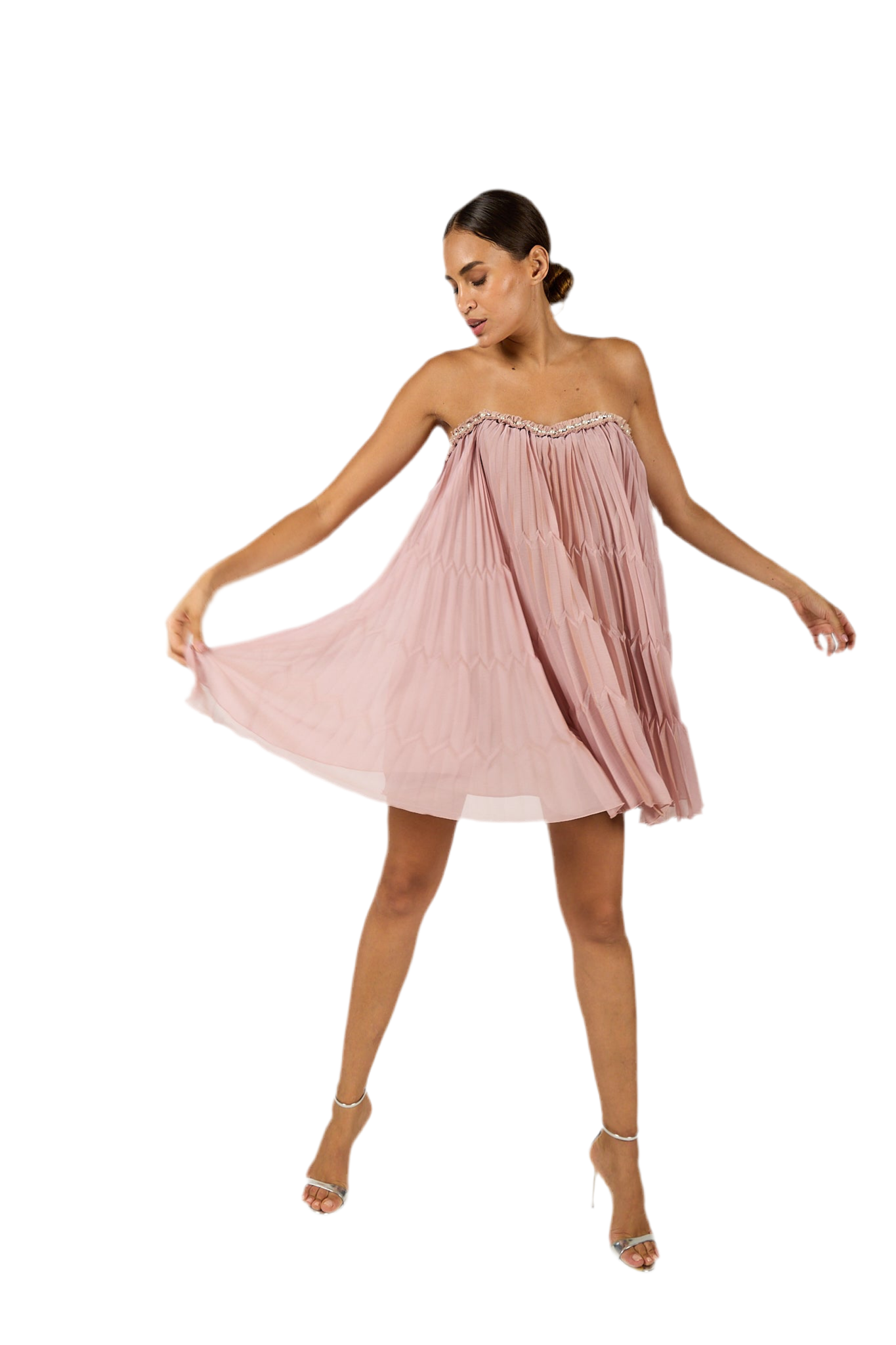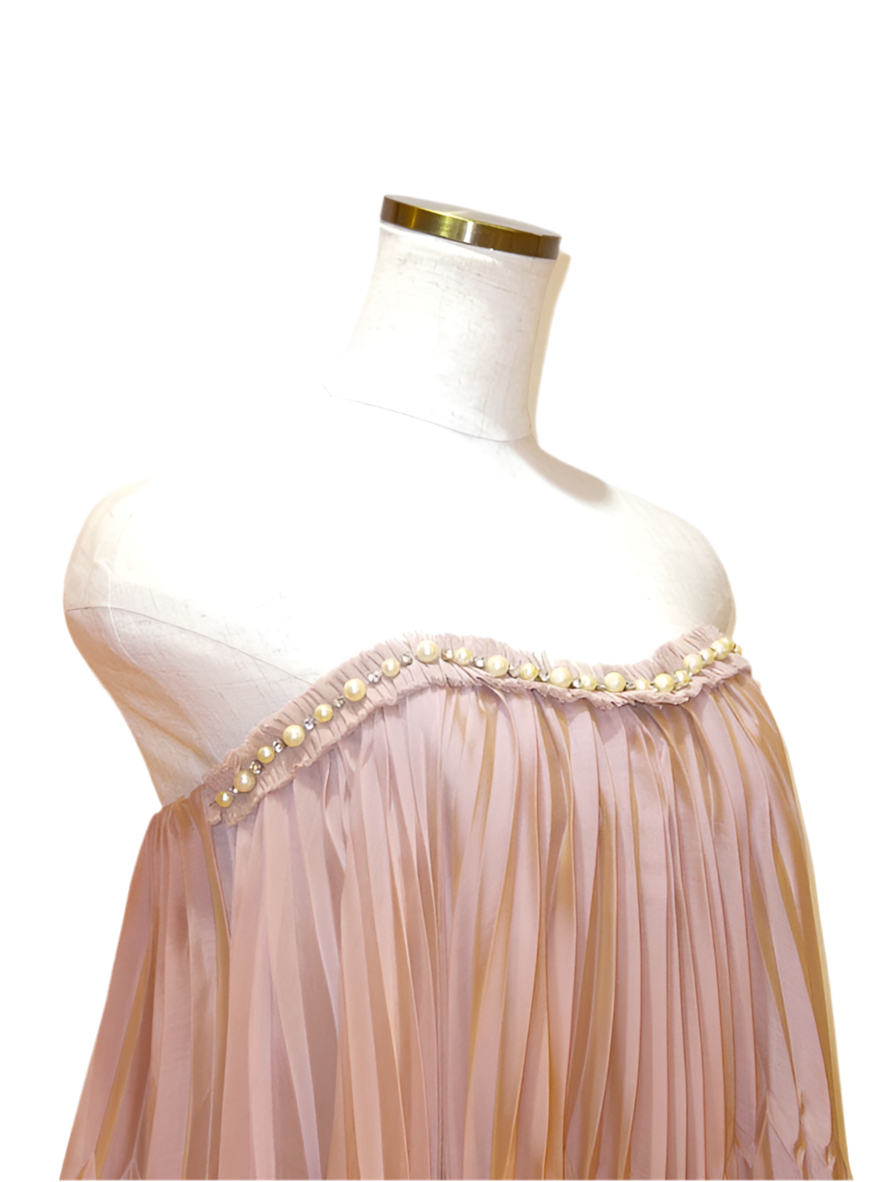 Abito voile, cristalli, perline, tinta unita con applicazioni, interno foderato, chiusura con zip, senza tasche.