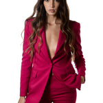 - Giacca monopetto dal taglio sartoriale, con revers classici, tasche con patta e chiusura a bottone.