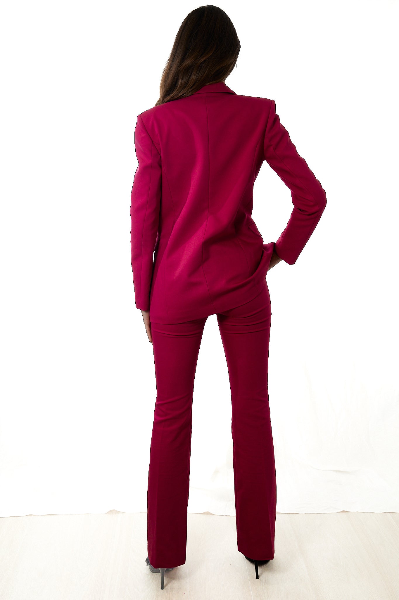 - Pantalone a gamba dritta leggermente svasata, che slancia la figura e dona eleganza ad ogni movimento. Un look audace e contemporaneo, ideale da indossare sia di giorno con sneakers per un tocco casual-chic, sia di sera con tacchi alti per un effetto glamour.