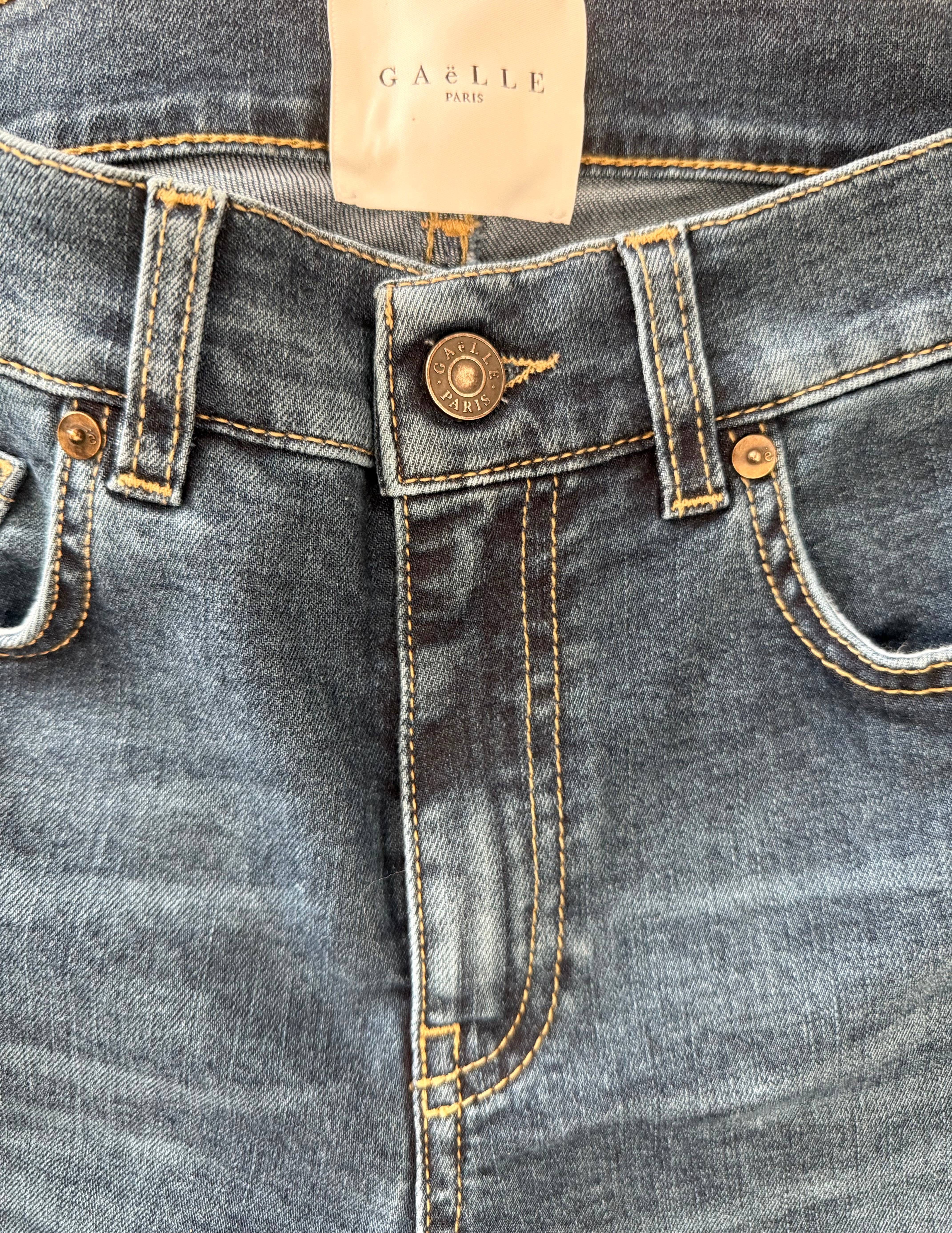 Jeans skinny blu firmati Gaelle, modello slim fit a vita regolare, realizzati in denim elasticizzato per una vestibilità aderente e confortevole.