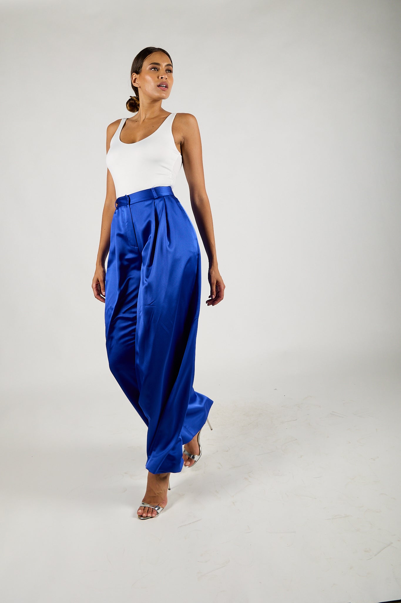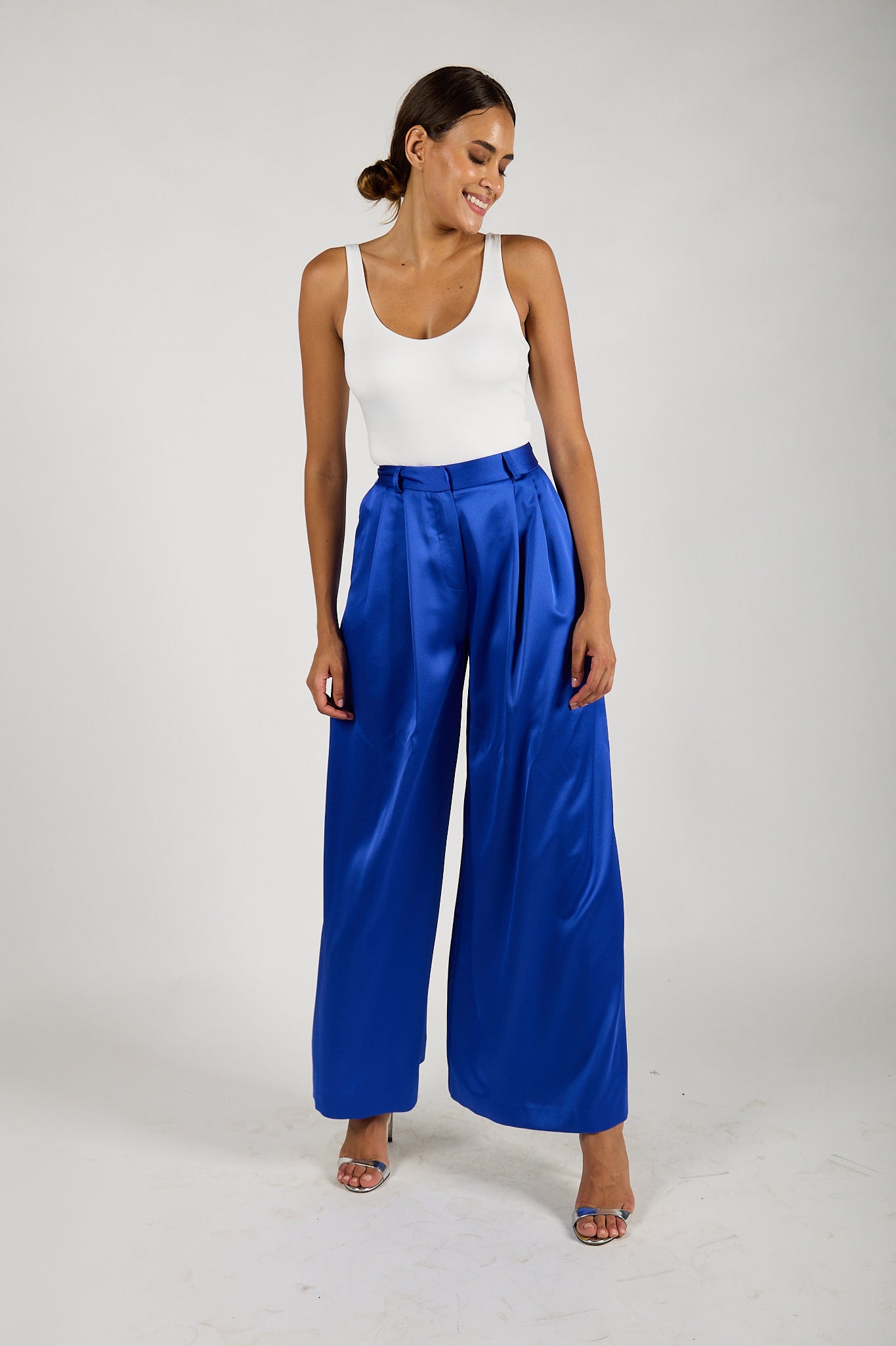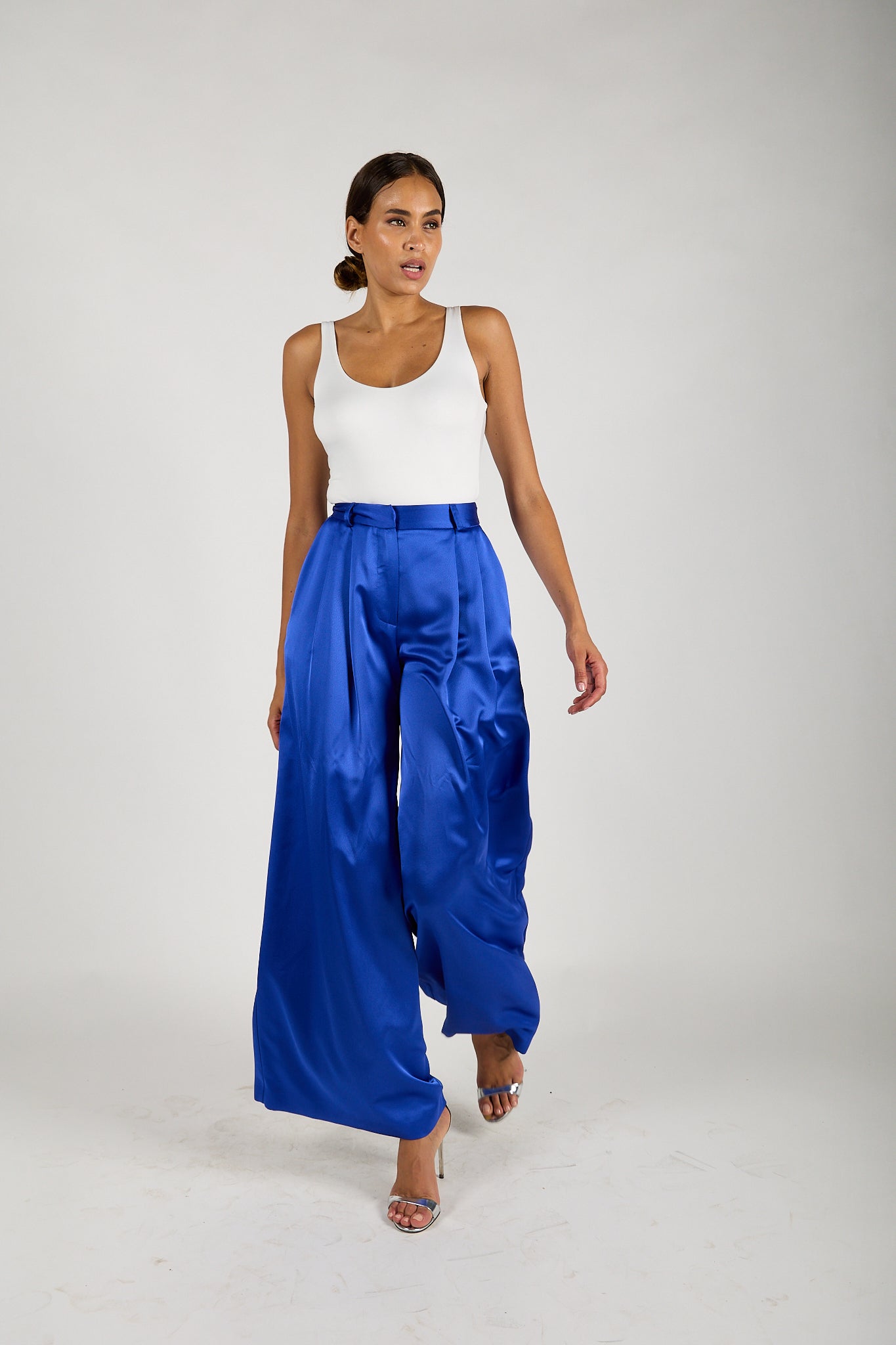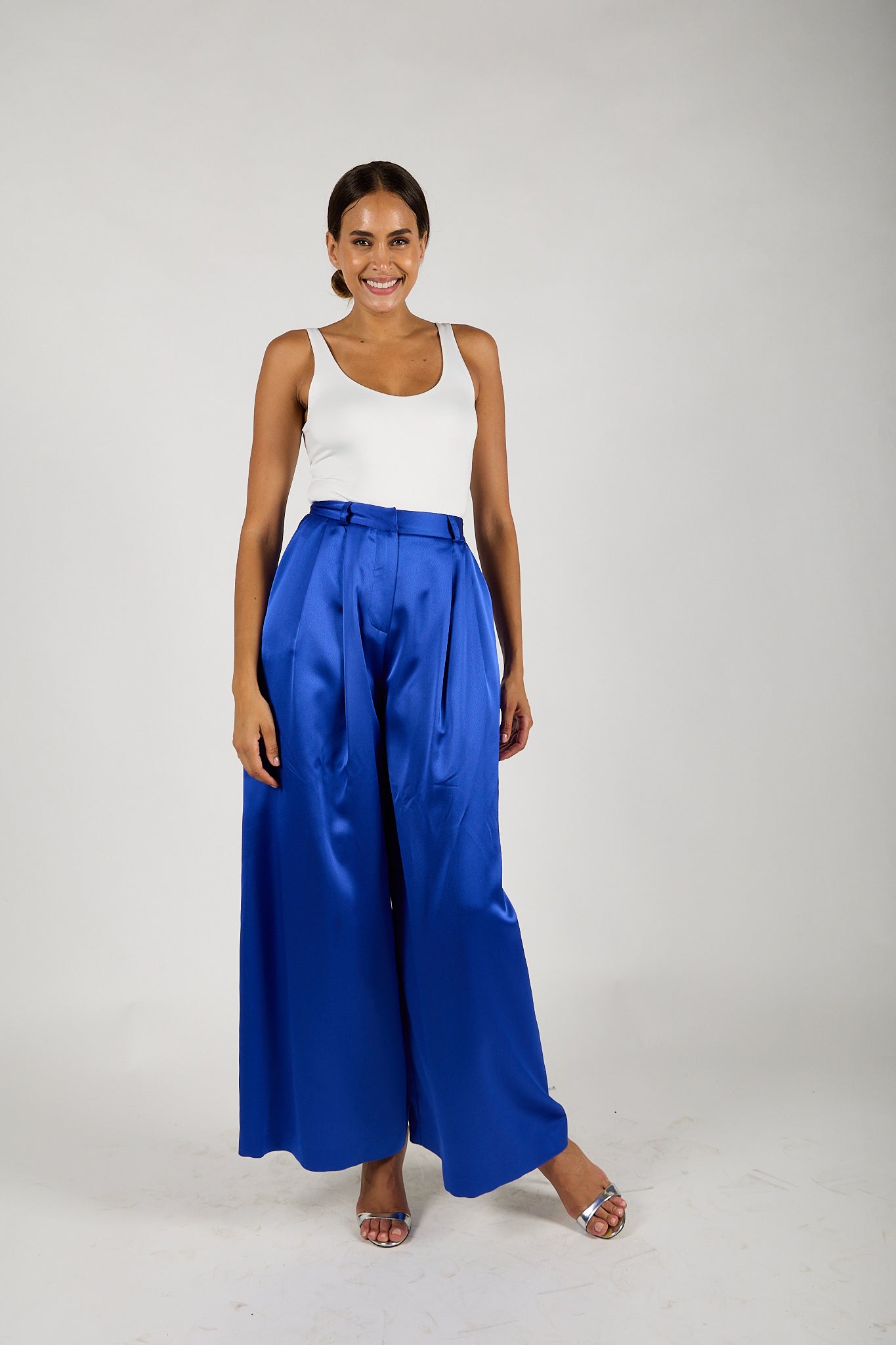 Pantaloni Palazzo a Vita Alta ELECTRIC BLUE