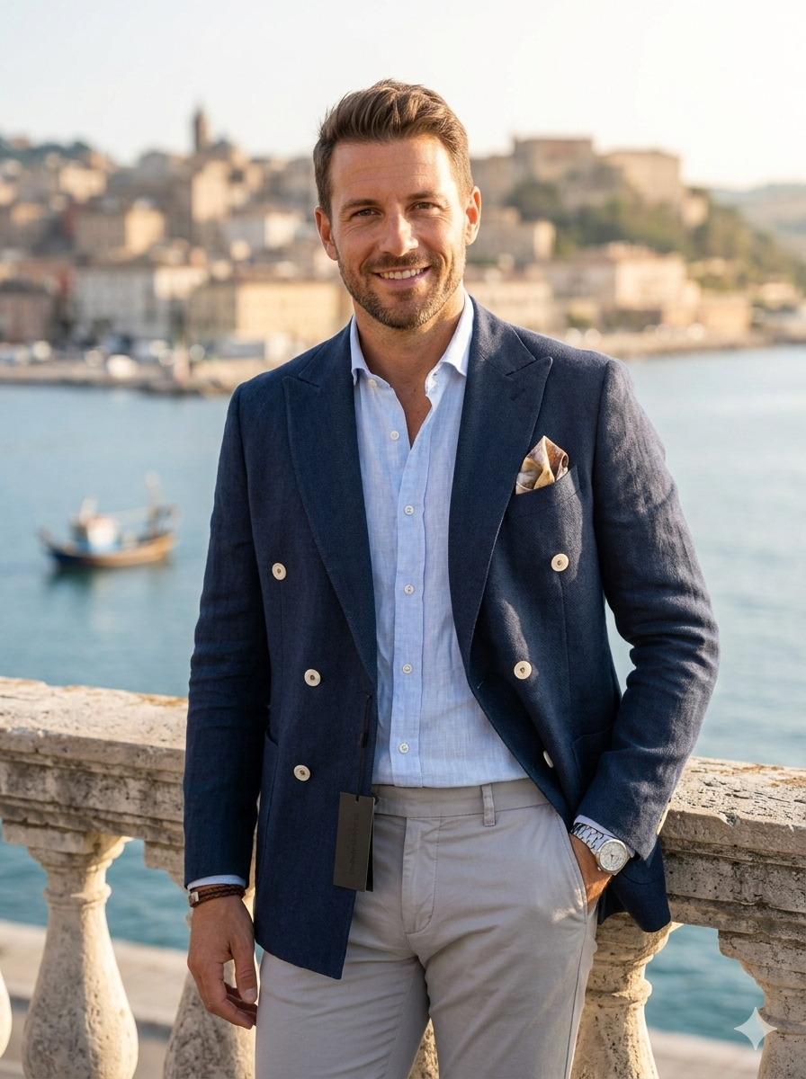 • Tessuto Pregiato: Realizzata in un blend fresco e strutturato di 55% Lino e 45% Cotone, ideale per le stagioni calde e i contesti smart-casual.
