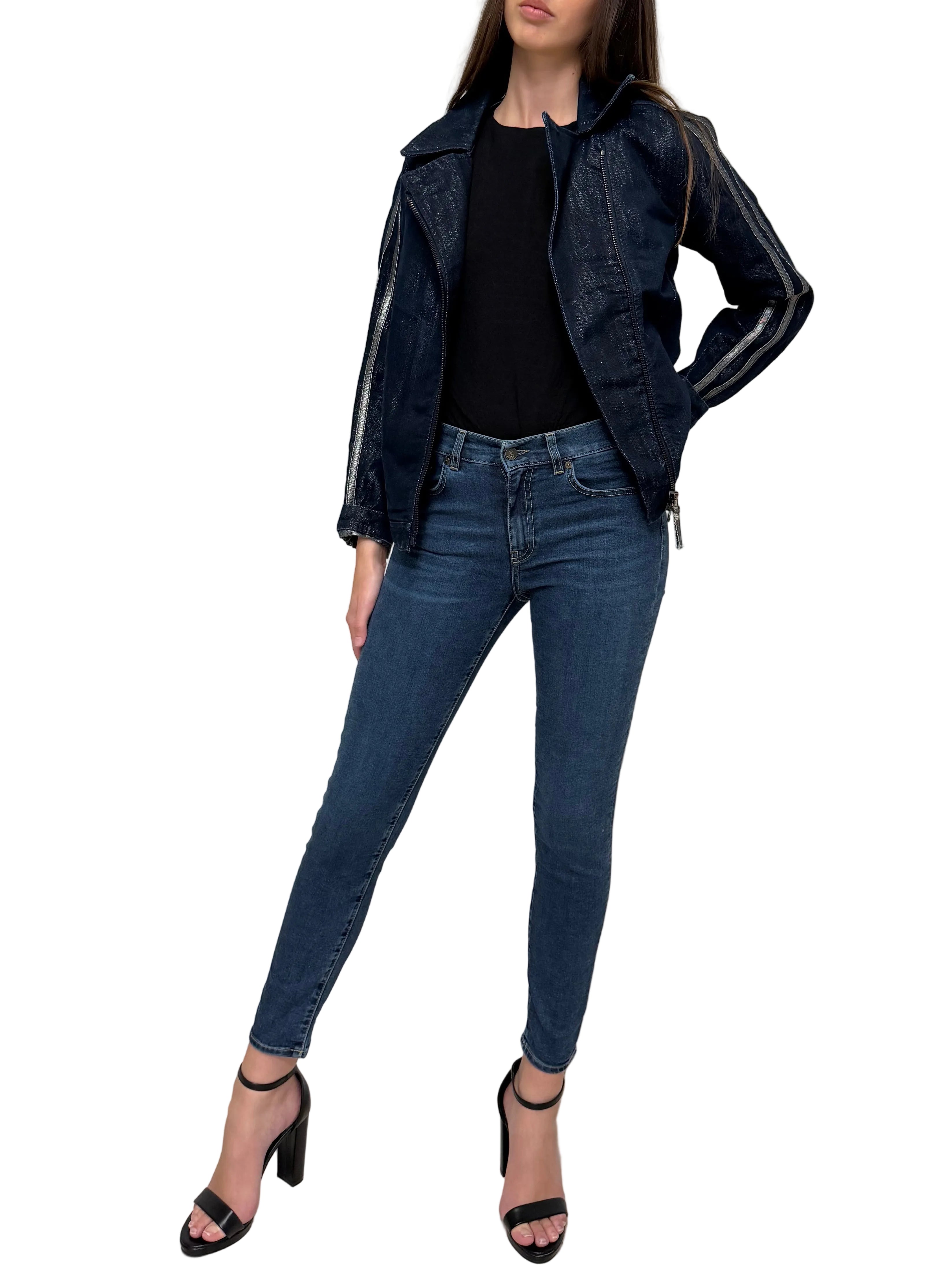 Realizzato in denim elasticizzato, offre comfort e libertà di movimento mantenendo una linea pulita ed elegante.Il design essenziale lo rende un capo estremamente versatile, perfetto sia per look quotidiani che per outfit più raffinati.