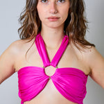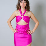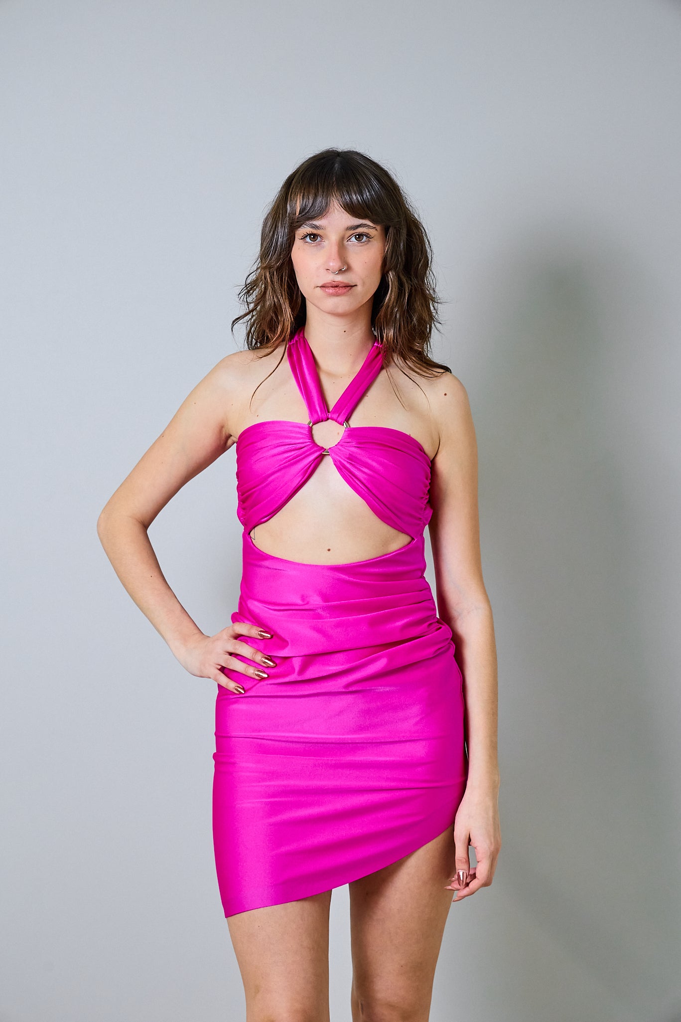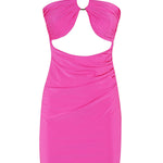 Mini abito fucsia House of Amen con cut-out e anello frontale