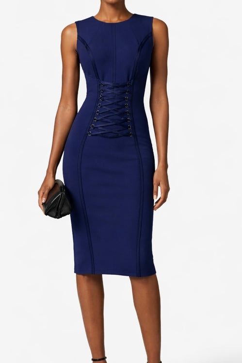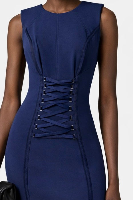 Abito in crêpe stretch con lacci criss-cross