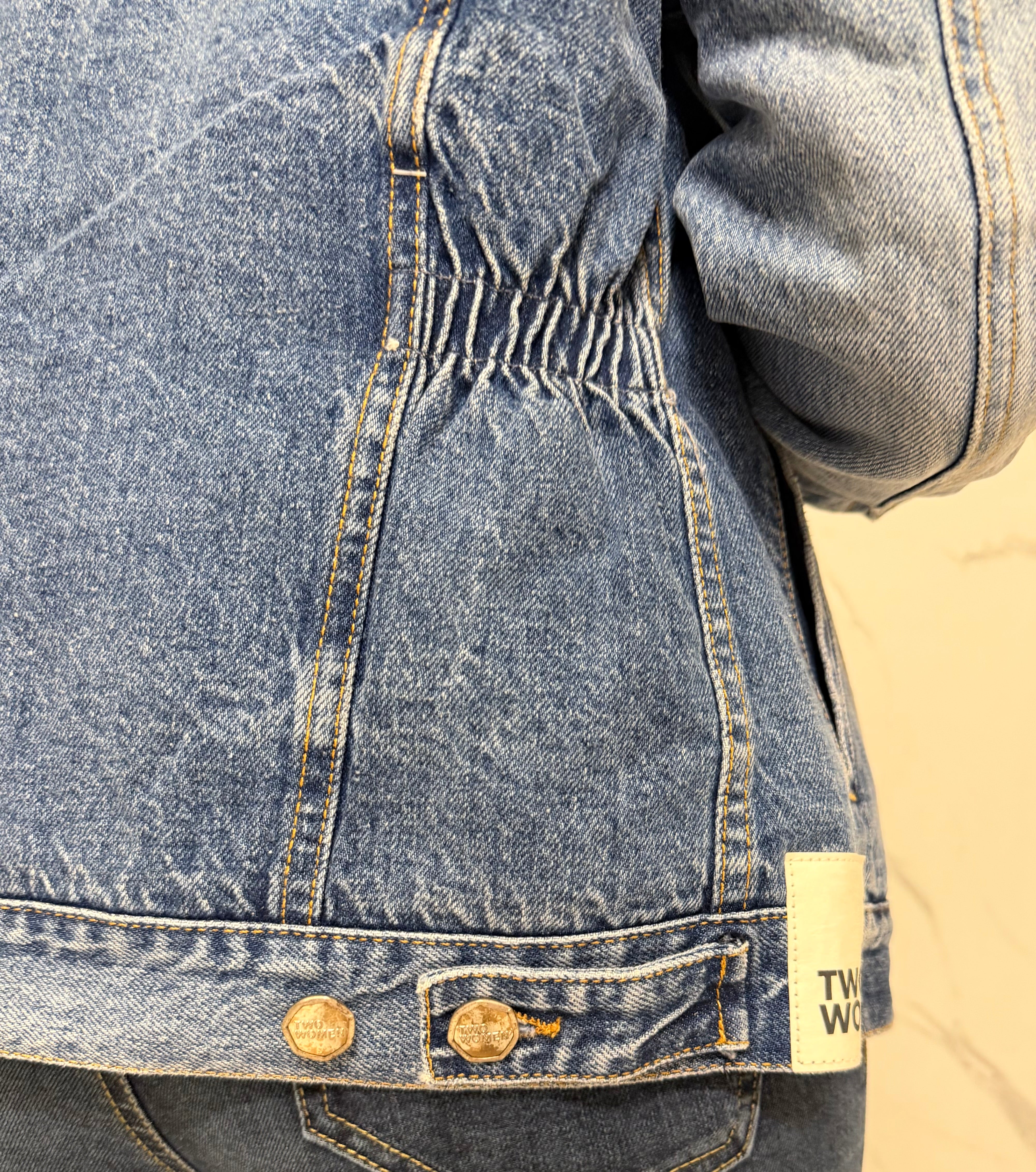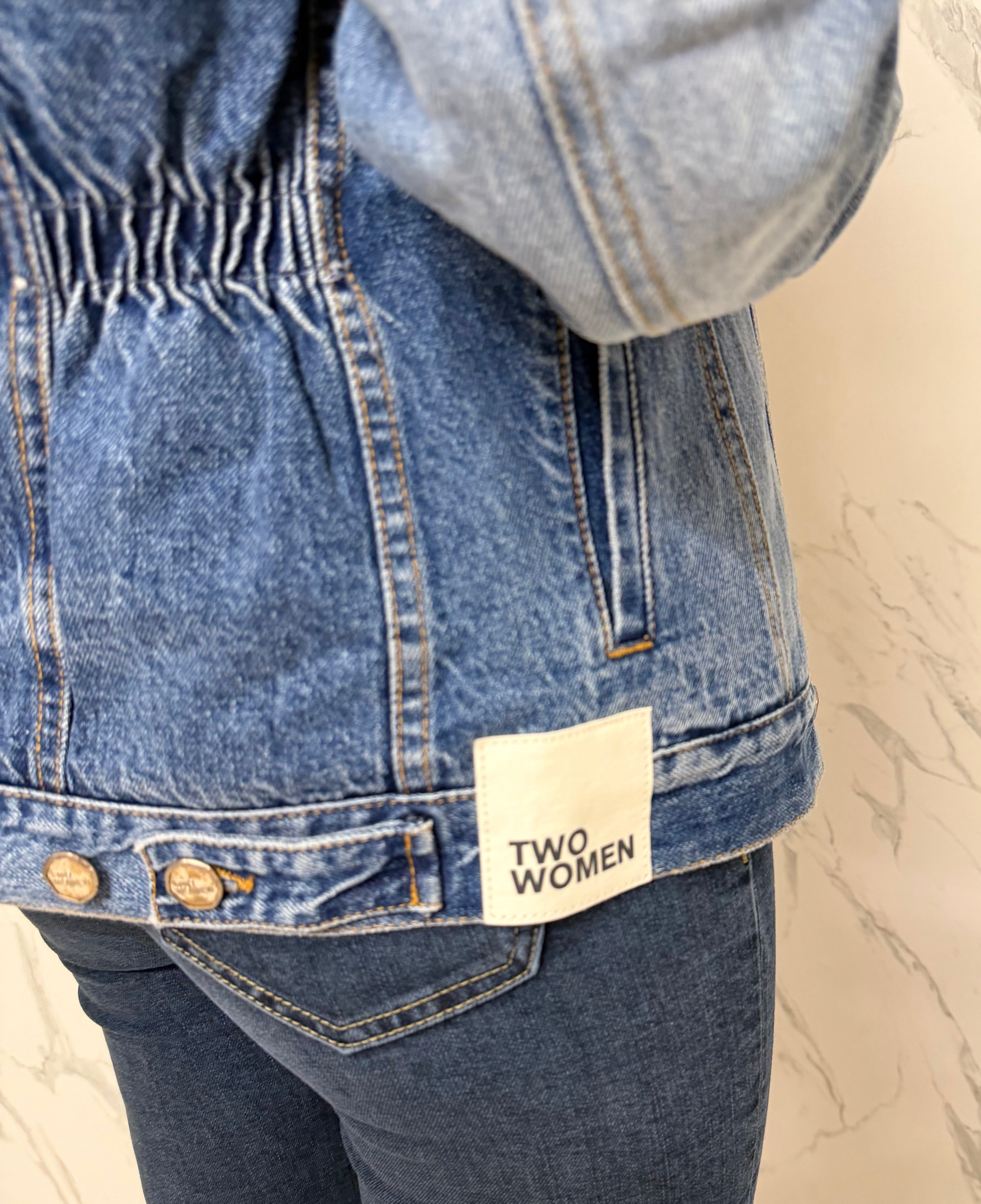 Giacca in jeans da donna firmata Two Women, un capo iconico con dettagli contemporanei e carattere deciso.
