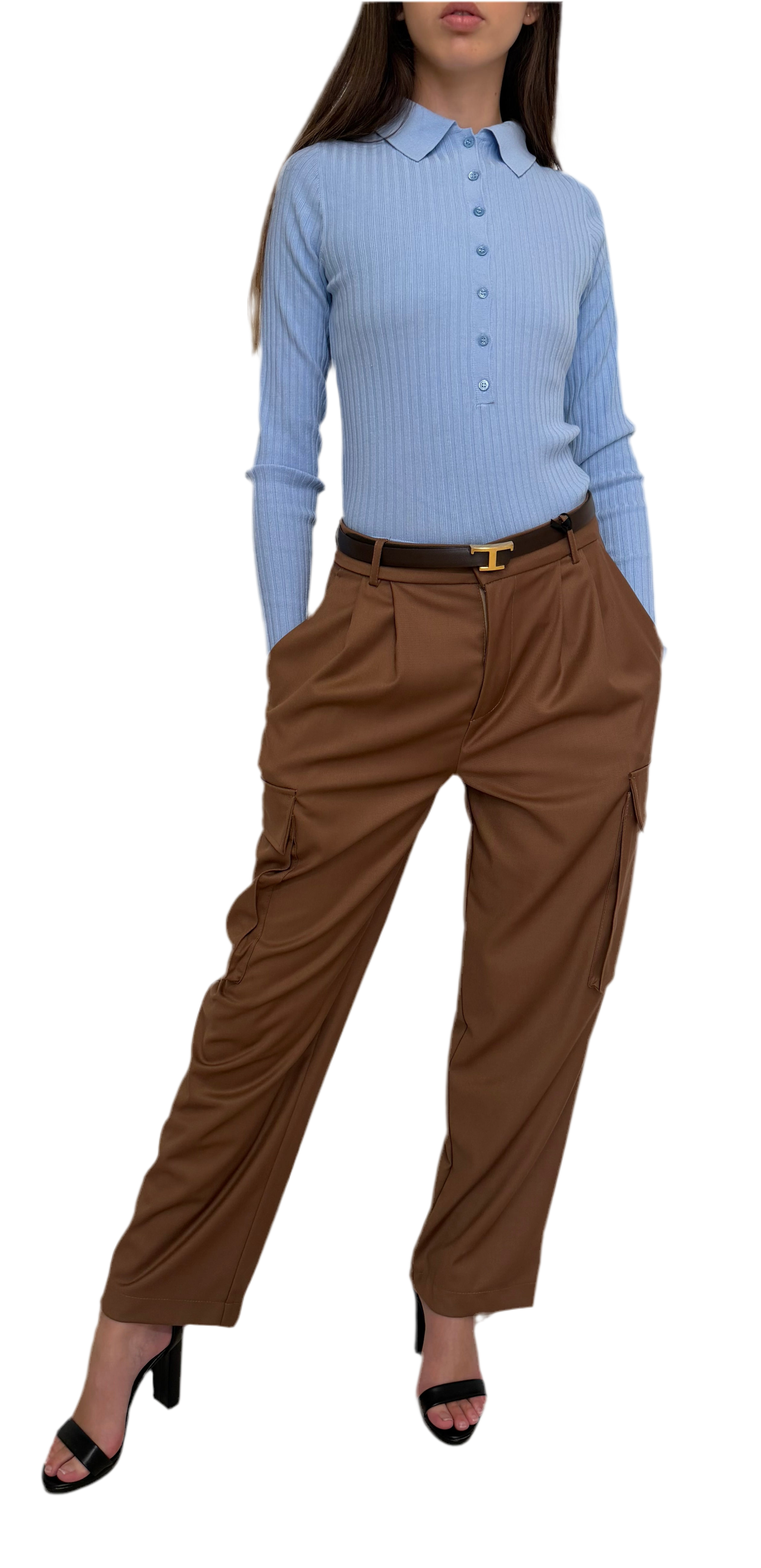 Pantalone cargo a vita media ,dal design contemporaneo, realizzato in tessuto fluido e confortevole.