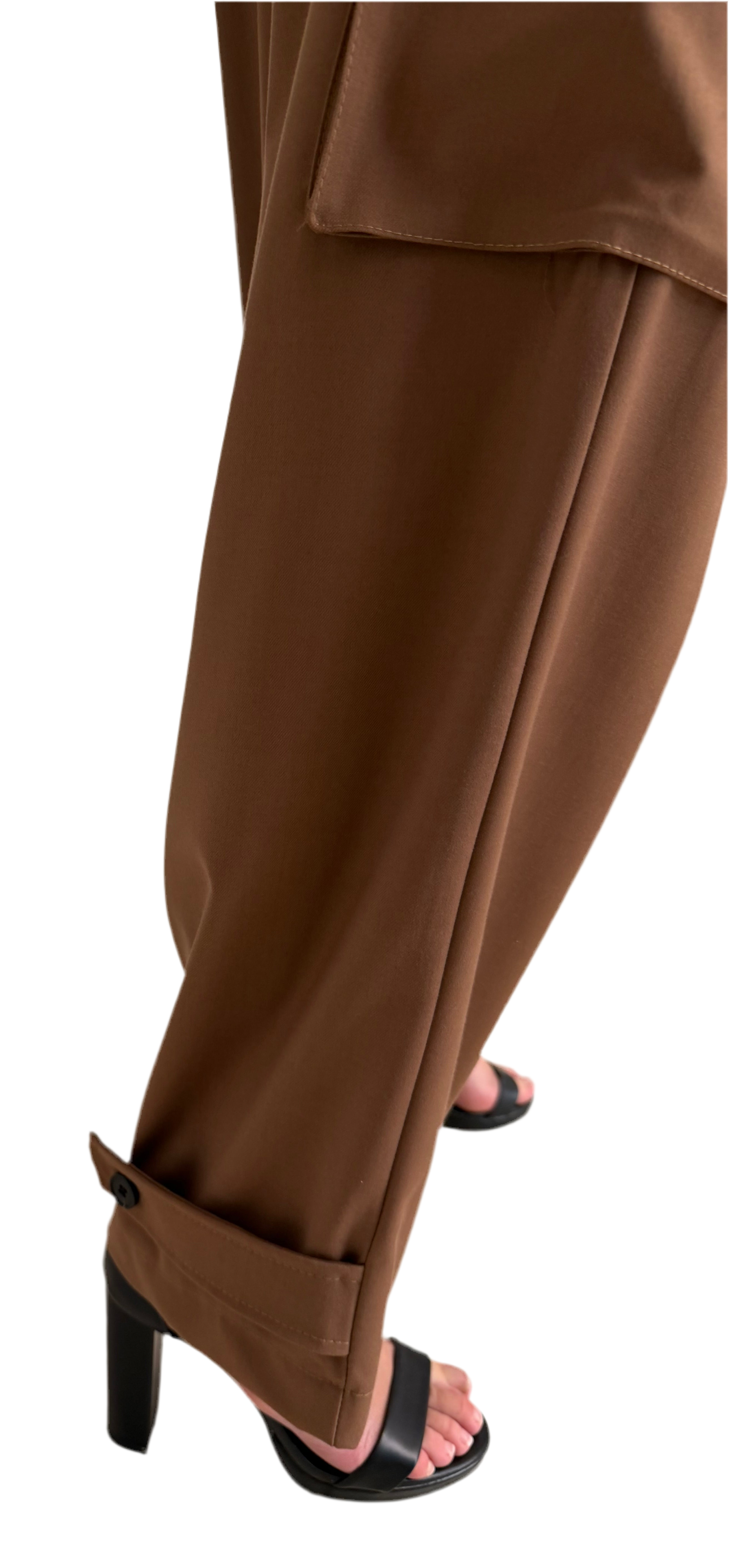 Il fondo con risvolto e bottone alla caviglia valorizza lo styling e mette in evidenza la scarpa.